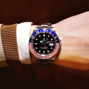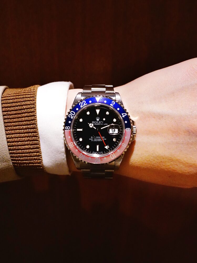 通称“ペプシ”と呼ばれる赤青ベゼルが象徴的な人気モデル。