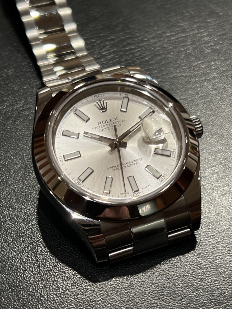 シンプルながら存在感もあるモデル! 吉川 クォーク梅田店 2026.02.23 DATEJUST II Ref.116300 シルバーダイヤル インデックスは現行モデルより大きく、視認性もあり使いやすくオススメです! 全体的に統一感のあるシンプルなデザインで流行りにも影響されにくい為、ファーストロレックスとしてもいかがでしょうか? デイトジャスト 中古品 クォーク梅田店 このスタッフへ問い合わせる この商品の詳細はこちら